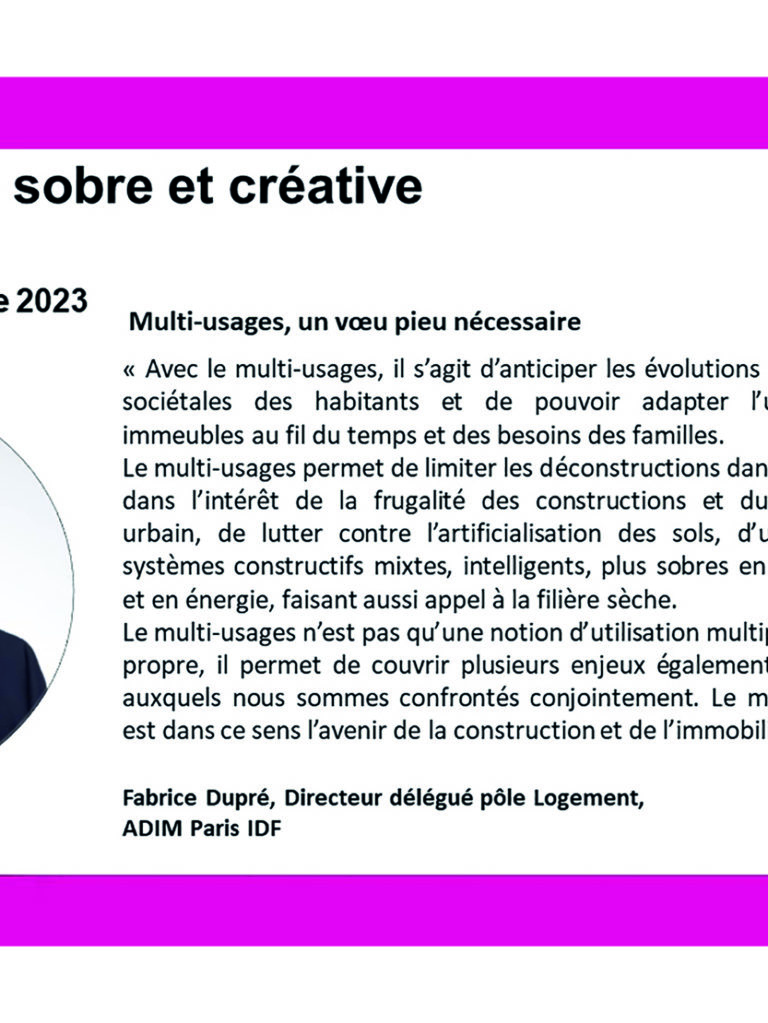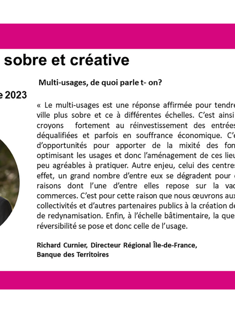 « Dans une période de profonds bouleversements, climatique, de nos modes de vie, de nos manières d’habiter, de travailler, la ville…